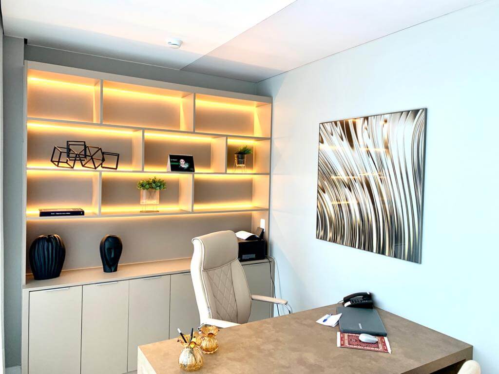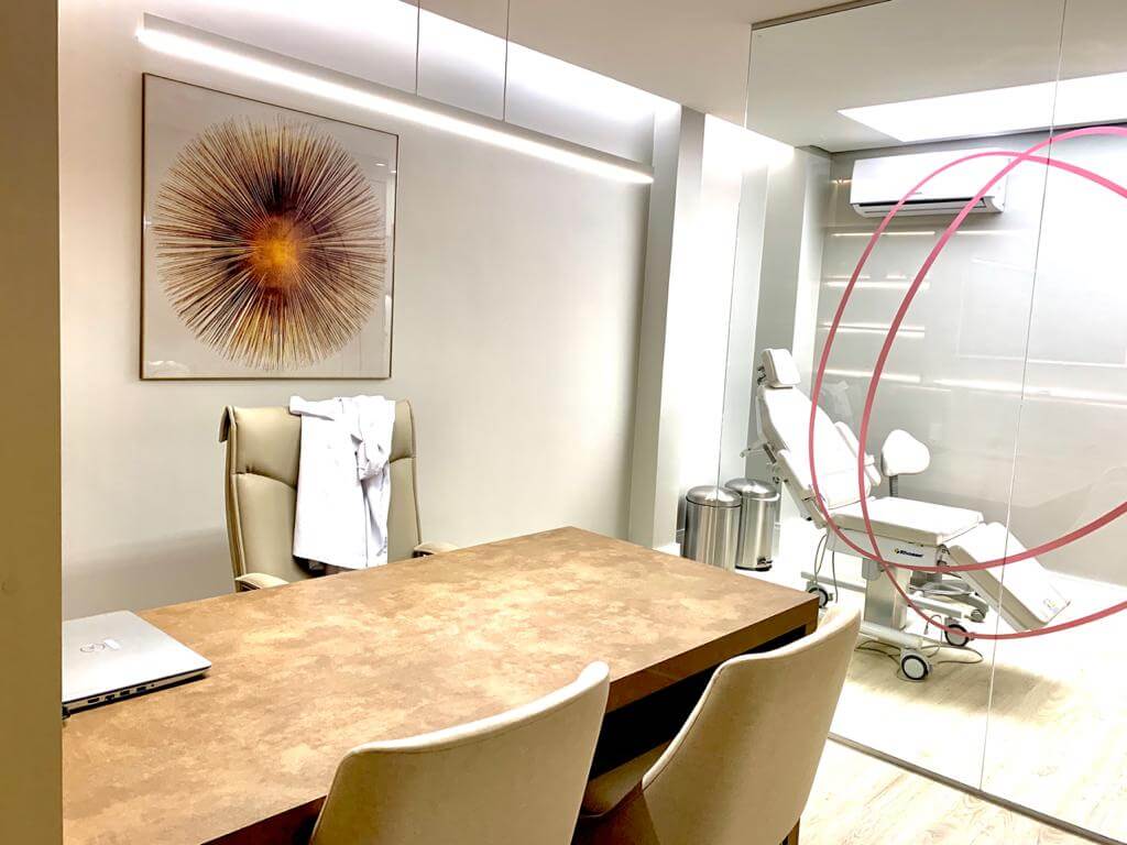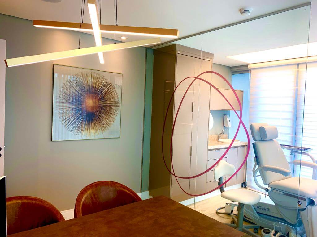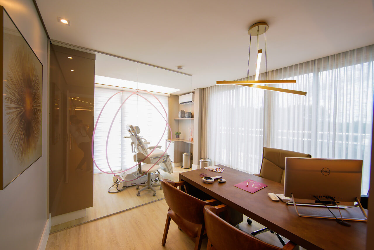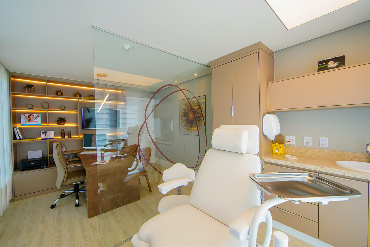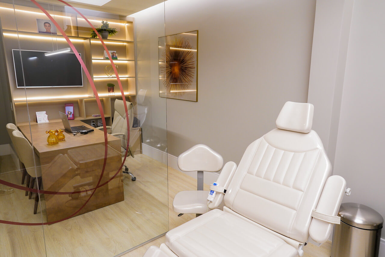 Desde o início, a clínica foi pensada para ser o oposto de um ambiente clínico frio e impessoal. A arquitetura, a decoração e o atendimento foram cuidadosamente planejados para que cada pessoa se sentisse “em casa”: acolhida, escutada e segura para falar sobre suas queixas, expectativas e desejos estéticos.